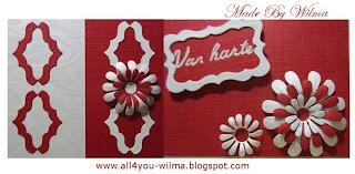 De borders heb ik met zilver garen aan/met elkaar "verbonden" en voor de bloem en de blaadjes heb ik gebruik gemaakt van zilverfolie.
